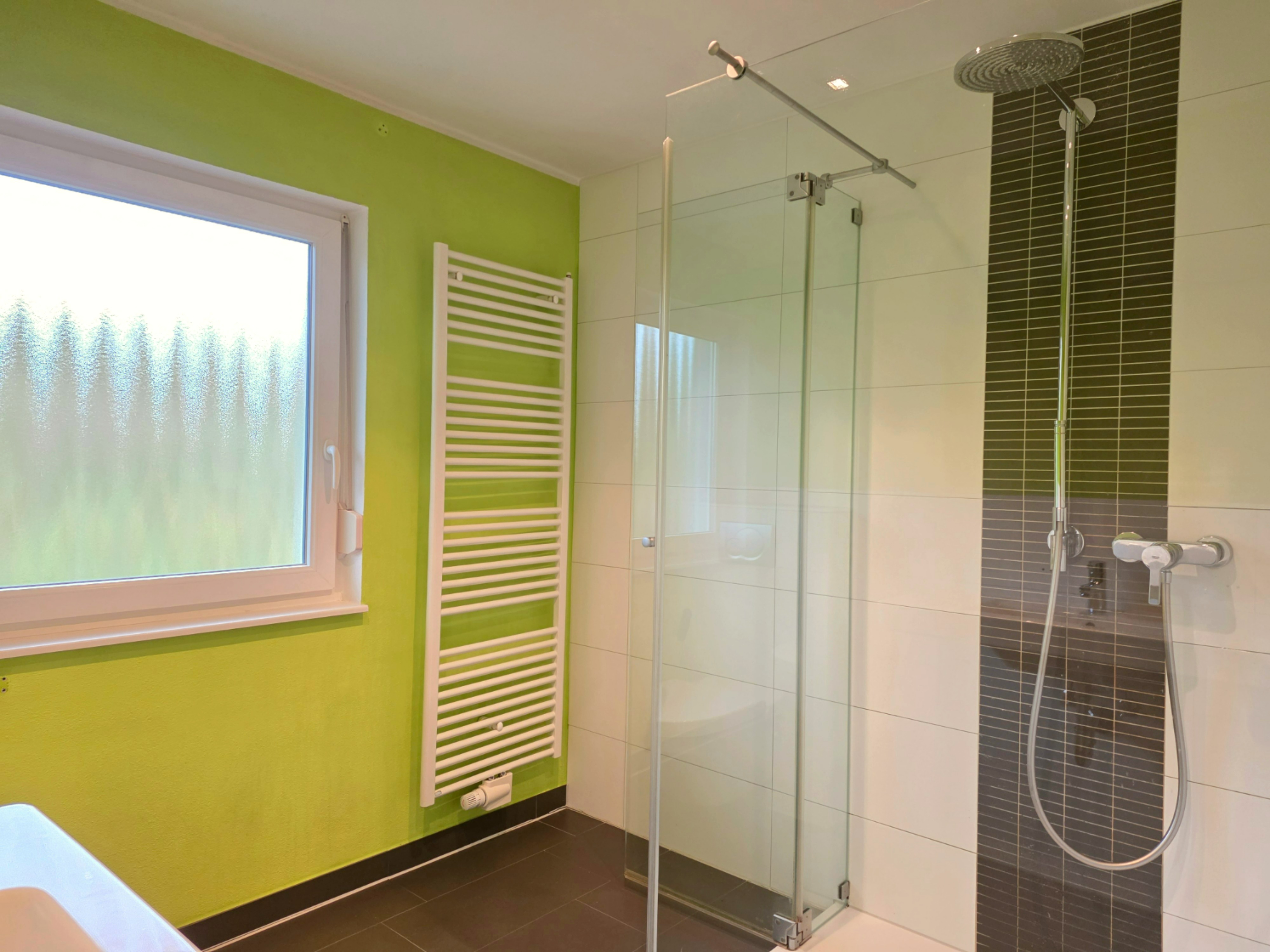 – Sanitär: Komplett erneuertes Bad (2012) mit ebenerdiger Dusche. Separater HWR im OG für Waschbereich.