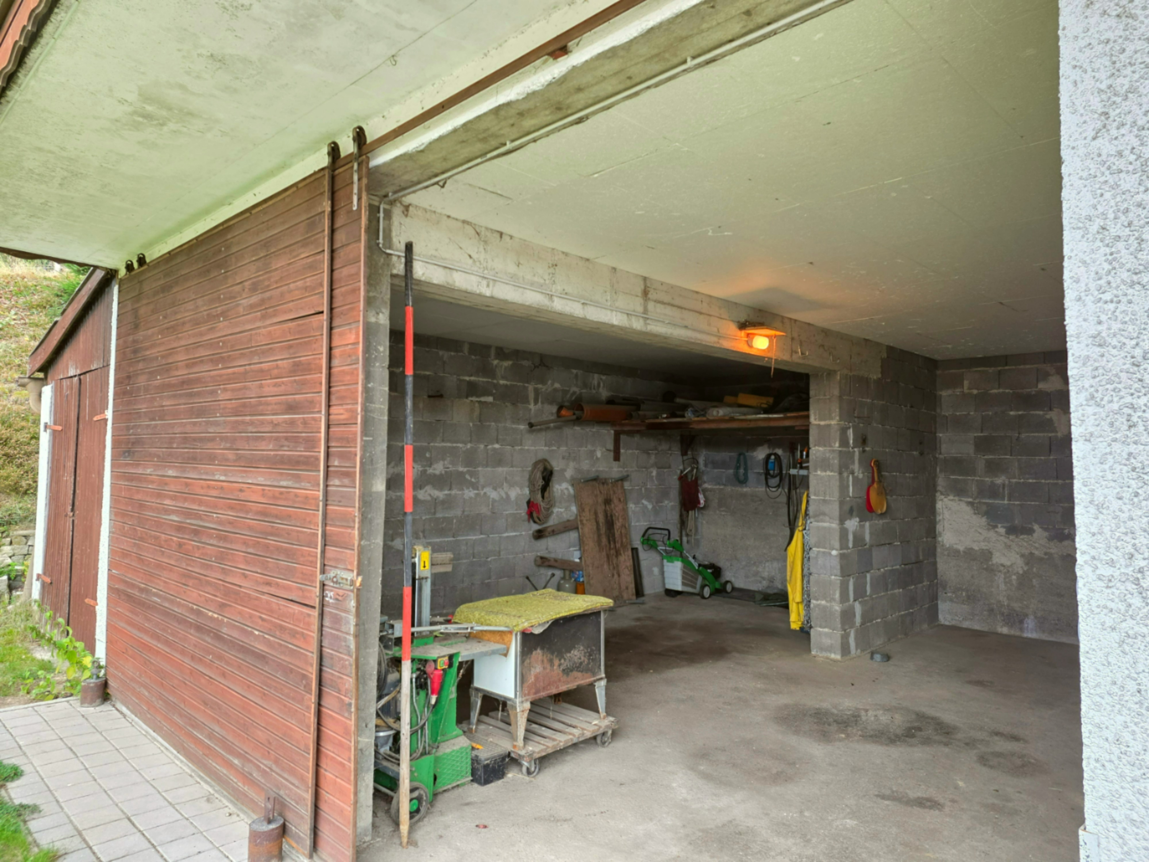 Das Erdgeschoss bietet den entscheidenden Mehrwert durch seine großzügigen Nutzflächen: Hier finden Sie die Doppelgarage mit zwei elektrischen Sektionaltoren sowie die große Gerätehalle, die über zwei Schiebetore verfügt. Diese Flächen sind unglaublich vielseitig und ideal für die Unterbringung von größeren Fahrzeugen (Wohnmobil, Traktor) oder als große Werkstatt.