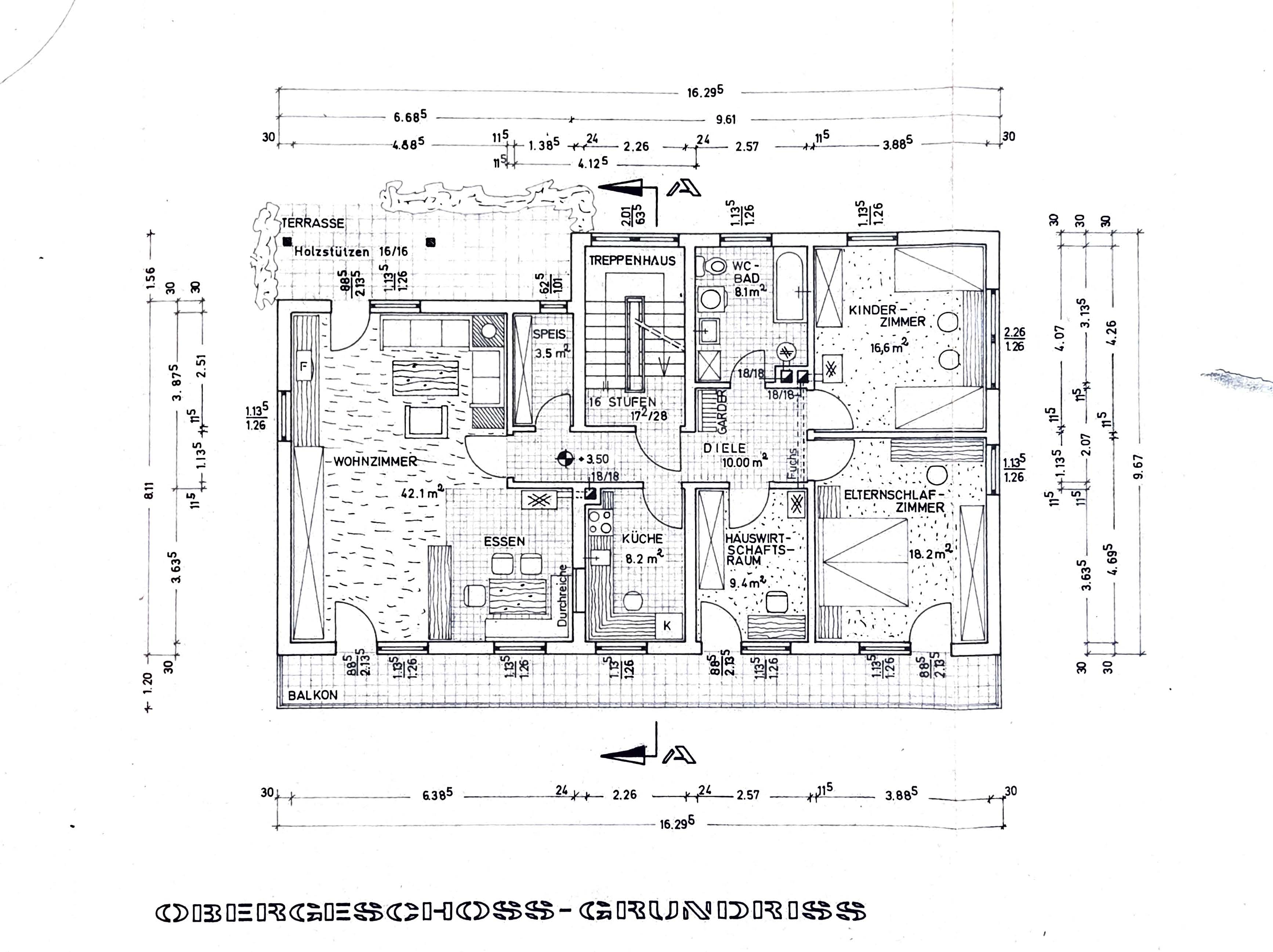 Der private Trakt ist klar vom Wohnbereich getrennt. Das Elternschlafzimmer bietet Ihnen über eine separate Türe direkten Zugang zum Balkon. Ergänzt wird dies durch das helle Kinderzimmer. Die Küche ist geräumig und lässt Ihnen viel Platz für eine kreative und individuelle Gestaltung. Die Durchreiche zum Essbereich wurde geschlossen, kann bei Bedarf jedoch einfach und schnell rückgebaut werden. Das Bad wurde komplett erneuert und verfügt über eine hochwertige, ebenerdige Dusche. Ein separater Hauswirtschaftsraum im OG, ideal für die komfortable Unterbringung des Wasch- und Bügelbereichs, erleichtert den Alltag ungemein.